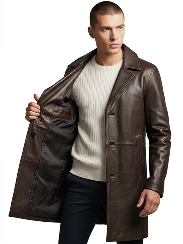 At Dudex Leather, we pride ourselves on offering high-quality leather outerwear. The American Legacy Brown Leather Trench Coat is made with care. Each piece is crafted for style and lasting quality. Explore our full collection of men’s leather coats and find the perfect piece for your wardrobe.
