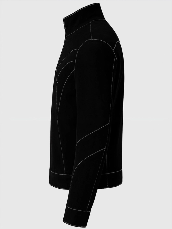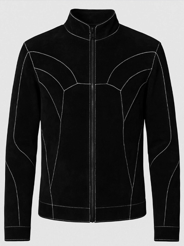 Handmade Black Suede Leather Jacket with White Stitching for Gothic Rock Fans