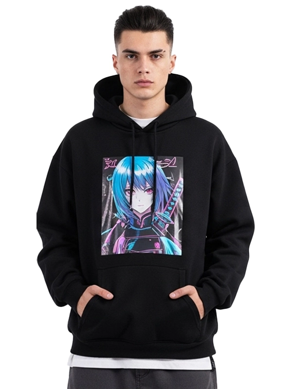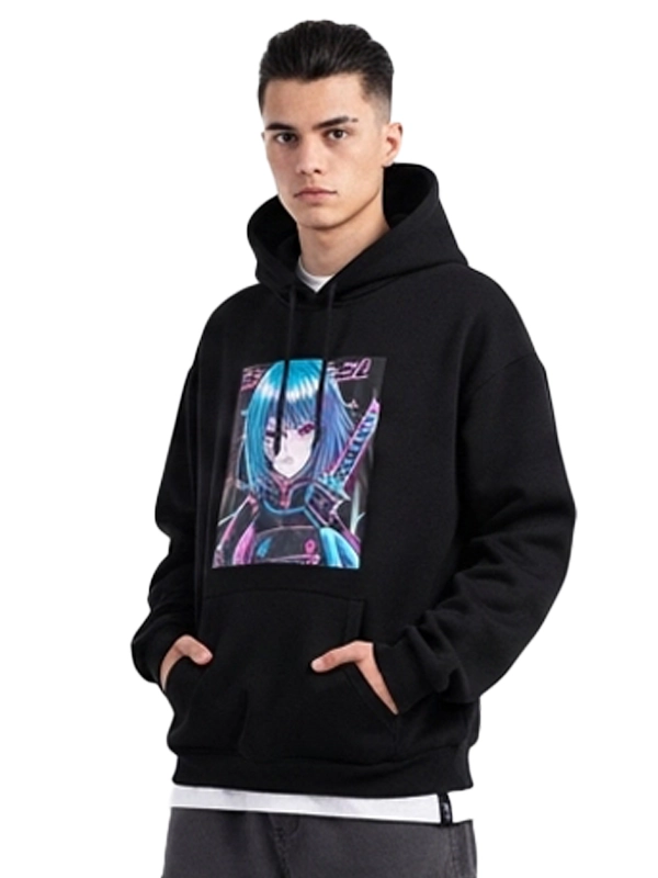 - Sleek & Stylish Design The bold graphic print on the front makes this hoodie stand out. This black fleece is a must-have. It lets you make a fashion statement while staying comfy.