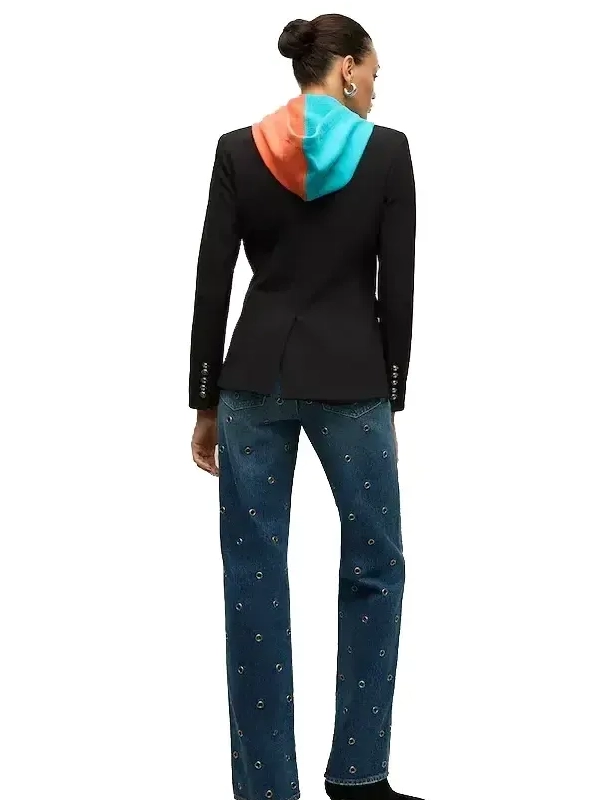 Show your team pride with the Miami Dolphins Veronica Beard Dickey Jacket Replica, designed for women who want a stylish balance of NFL fan apparel and fashion-forward design. Inspired by Veronica Beard’s signature Dickey blazer, this replica jacket is tailored in black suiting fabric with a lapel collar and hidden hood, making it ideal for game days, casual outings, or smart-casual wear.