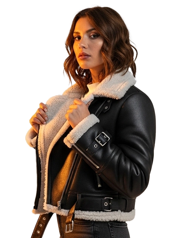 • Winter-Ready: The Noir Aurelia Shearling Jacket keeps you warm and stylish in the cold. This jacket keeps you warm in freezing temperatures. It is also a stylish layering piece.
